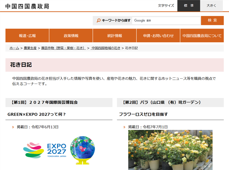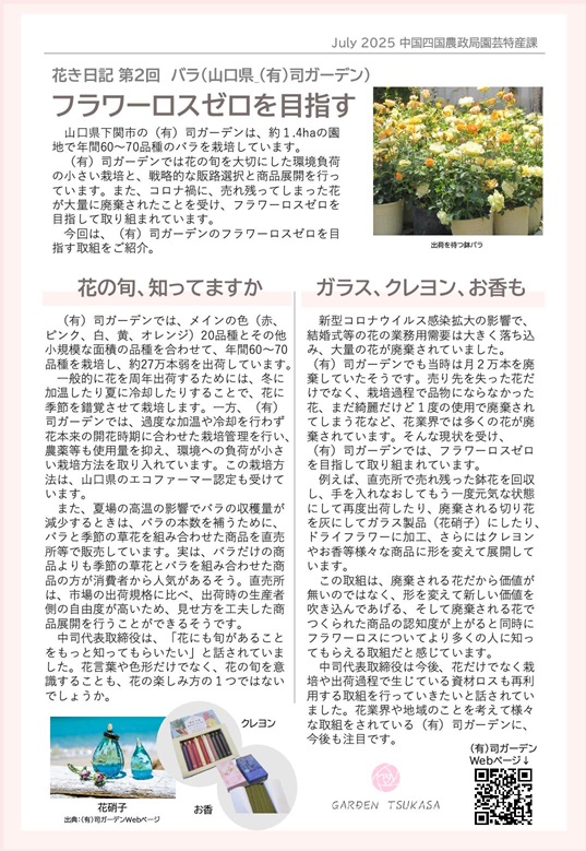 中国四国農政局の「花き日記」第2回の題材になりました。