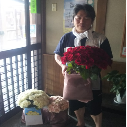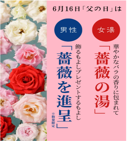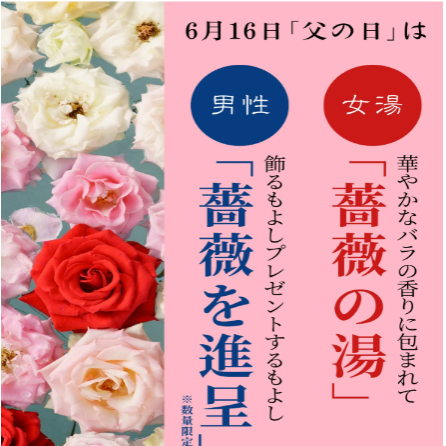 入浴された方にバラのプレゼントと館内をバラで装飾