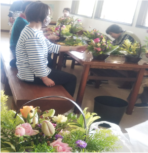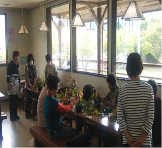 小学校、中学・高校等と花のロスフラワーについての勉強会とロスフラワーを活用したアレンジ教室等)フラワーロス講師として参加